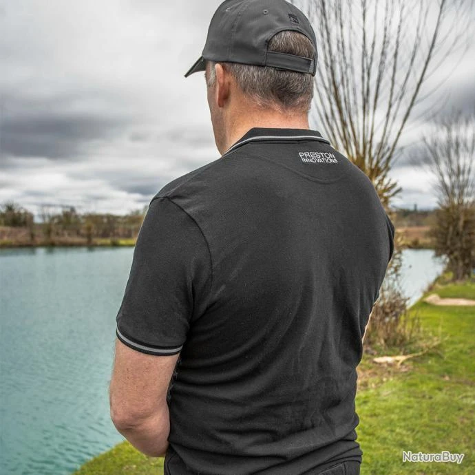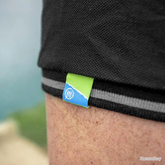 Polo noir 60% coton, 40% Polyester avec logo brodé. Disponible de M à 3XL.