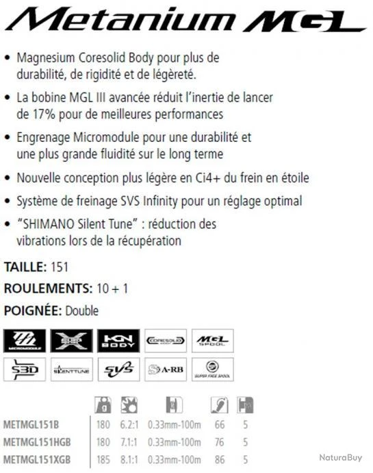 Le moulinet baitcasting Metanium MGL est un des fleurons de la marque Shimano.