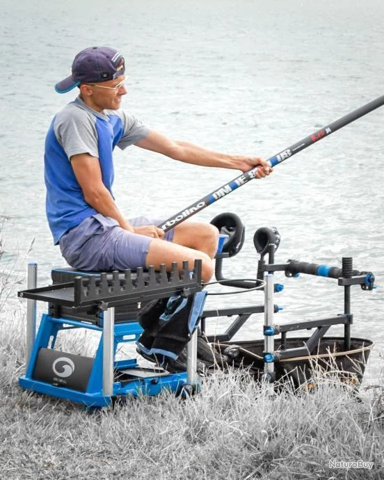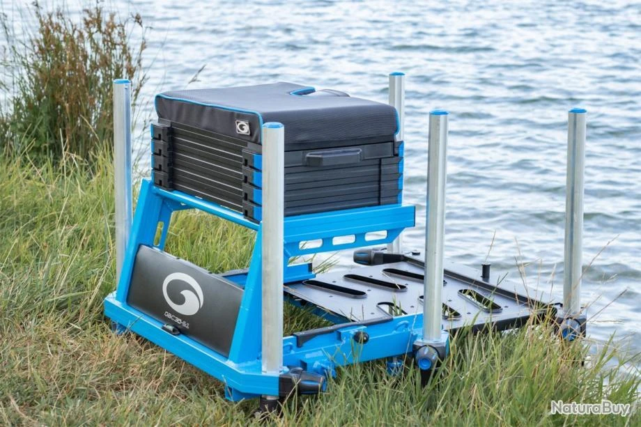 Le coussin possède un bloque talon canne intégré. Sous le coussin se positionne un tiroir latéral de 30mm compartimenté. Les compartiments permettent, de fait, le rangement optimal de tous les petits accessoires utiles pour la réussite de votre partie de pêche ou compétition (sondes, dégorgeoirs, pinces, ciseaux, marqueurs, nylons, boites de plomb, …)