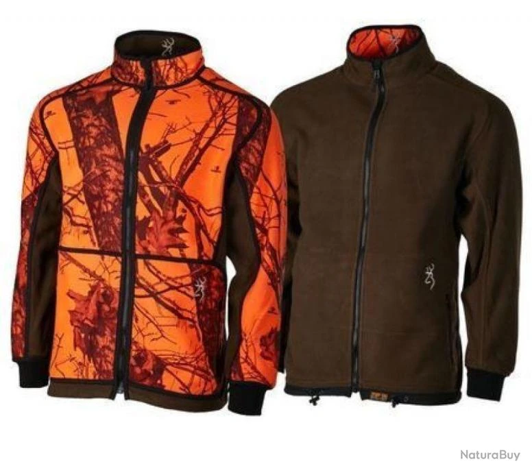 Browning vous propose sa veste polaire Powerfleece réversible. Très chaude, cette veste polaire orange et fluorescente au camouflage Realtree®, réversible en kaki est aussi déperlante.