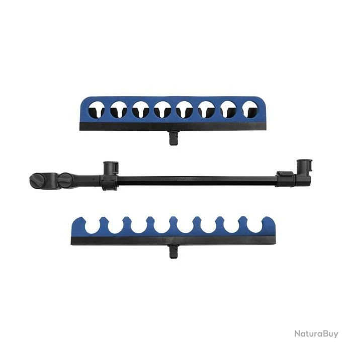 Le bras télescopique permet d’ajuster sa longueur rapidement en particulier pour les kits les plus longs, les supports de kits sont eux pourvus d’inserts Quick Release afin d’obtenir un rangement compact mais rapide à mettre en place.